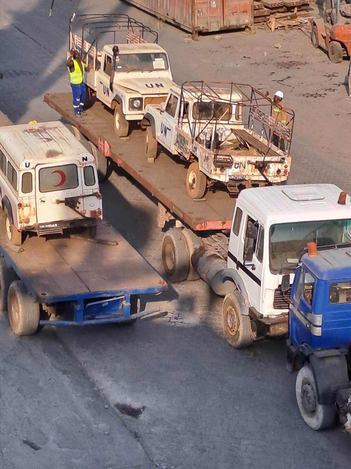 The M.V. Pacific Dawn loaded used trucks and vehicles on behalf of the United Nations at the Port of Douala, Cameroon. The cargo consisted of used trucks and jeeps in aged condition at the time of loading.